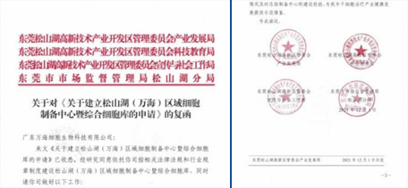 荣获由:发改委、卫健委、食药监局、科技局四部门联合颁发的具备“区域细胞制备中心”资质。